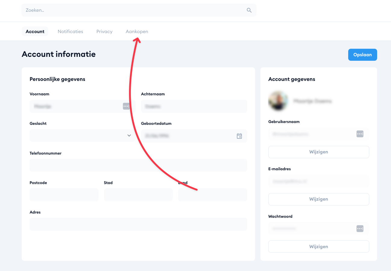Ga vervolgens naar de tab Aankopen.